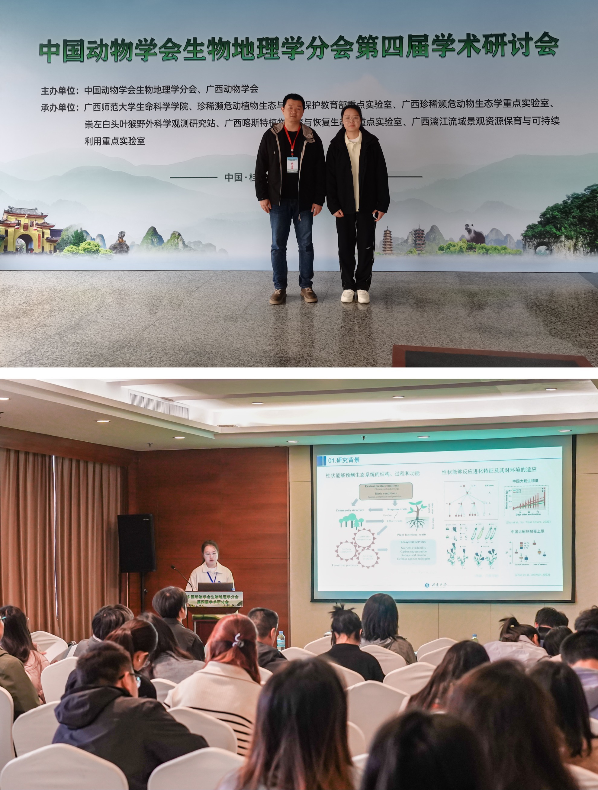2024年11月22日-25日,中国动物学会生物地理学分会第四届学术研讨会在广西桂林顺利召开。此次会议由中国动物学会生物地理学分会和广西动物学会联合主办,广西师范大学生命科学学院、广西喀斯特植物保育与恢复生态学重点实验室等承办。来自全国28个省(自治区、直辖市)的86个院校、科研机构及企业单位的310多位代表参加了此次学术盛宴。