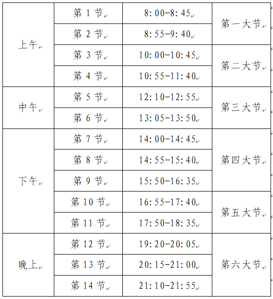 课程节次安排表