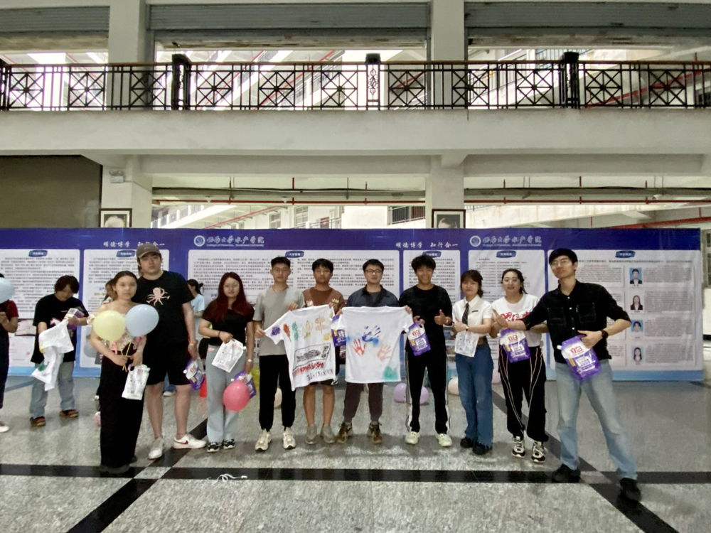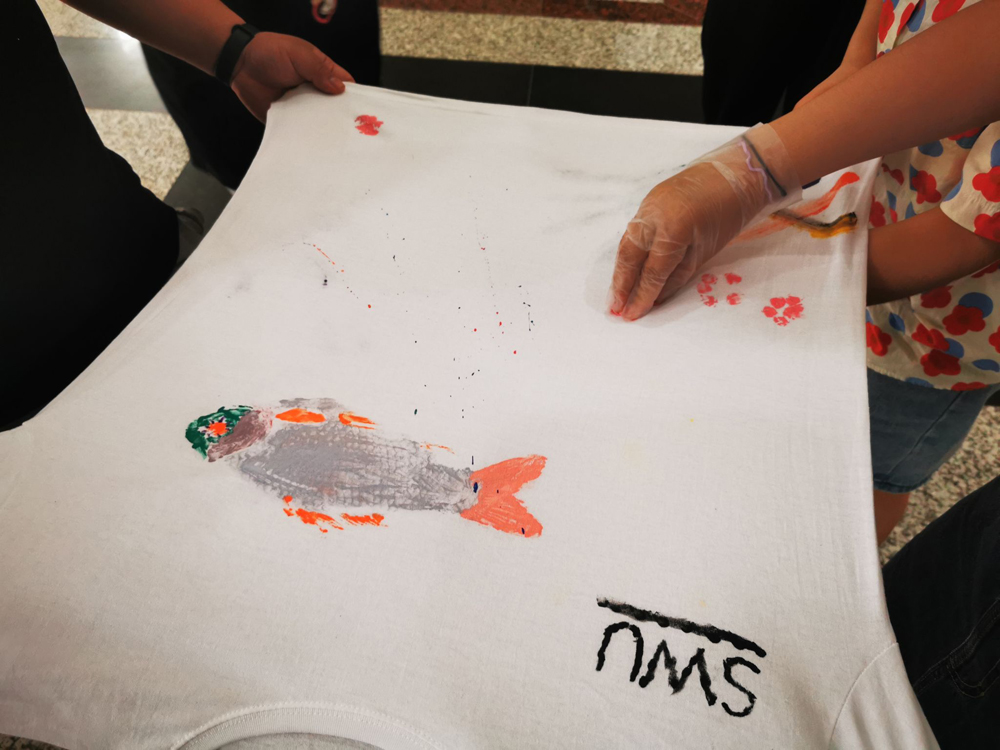 本次鱼拓体验选用常见的鲫鱼作为绘图对象,在对鲫鱼进行麻醉后,同学们通过组内讨论确定各自的绘画主题并绘制草稿,再用颜料对鱼体进行上色后拓在衬衣上。通过这项活动同学们表示对水产专业知识有了新的认识,增强了同学们的动手能力和团队合作意识。
