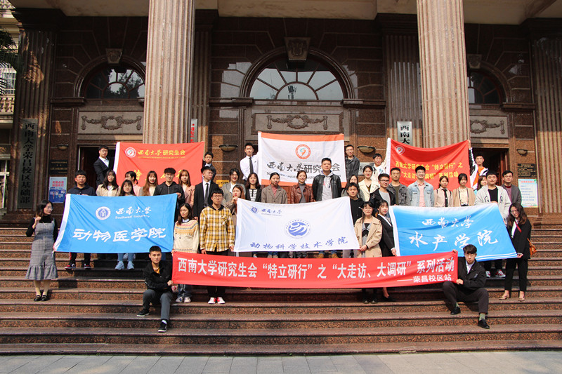 11月15日,研工部教育科胥宏祥科长携校研会工作人员前往荣昌校区参与betway西汉姆联研究生会主办,水产学院、动物科学技术学院、动物医学院三院承办的 “大走访,大调研”活动。我院辅导员尹斌和祁礽、研会执行主席卢桦、研究生代表杨成年参加了本次交流活动。