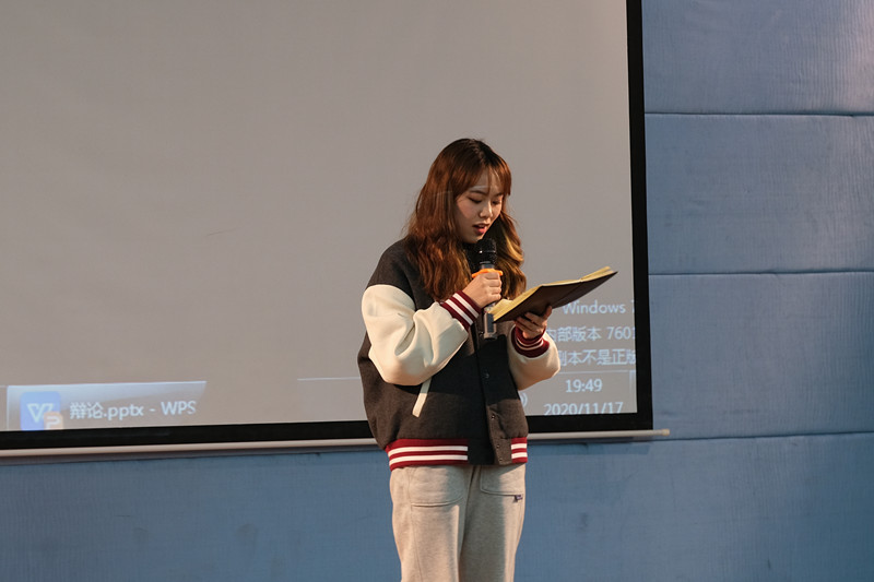 学院辩论队队长杜成超同学综合比赛双方陈述及其表现做出了精彩的总结。她深度剖析了此次辩题,指生了双方的优点和不足,并给出了指导性建议,期待大家的进步。