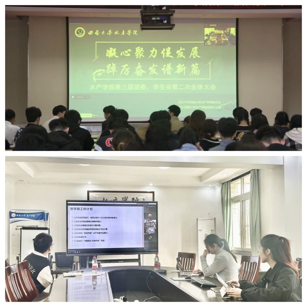3月17日下午,学院第三届团委、学生会第二次全体会议于荣昌校区7B101报告厅、北碚校区水产学院二楼会议室顺利召开。学院党委副书记、纪委书记刘一丹,团委书记兼学生工作办公室主任李卿路,学院辅导员尹斌、祁礽应邀出席本次会议,学院第三届团委、学生会全体成员及下属部门主要负责人参加会议。