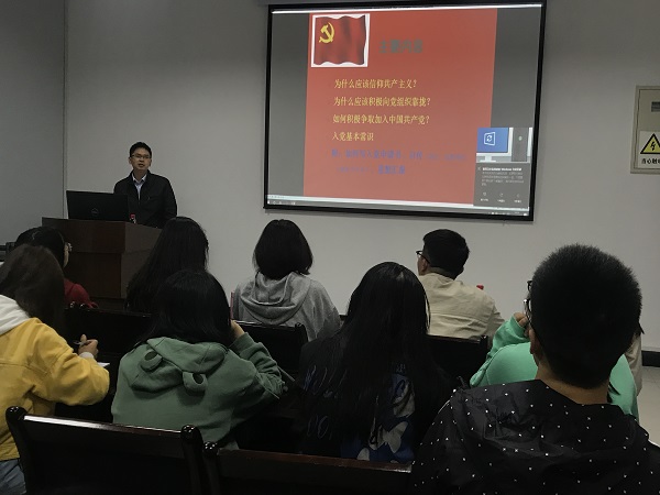 学院党委副书记穆奎同志以《厚德载物,相约理想的巅峰—大学生入党启蒙教育》为题,从马克思主义的人民性和实践性、共产主义的科学性、如何积极争取加入中国共产党和入党的基本程序等方面为新生做了详细介绍。穆书记要求各位新生要始终脚踏实地,严于律己,树立正确的入党动机,勉励大家要努力学习文化知识,努力践行为人民服务的宗旨,从身边点滴做起,不断提升自己的素质与能力,以实际行动争取早日加入中国共产党。团委书记李卿璐老师、组织员陈博老师、辅导员尹斌老师则分别从学习教育小组安排、党旗飘飘的学习考试注意事项、入党申请书的撰写提交等方面给大家作了分享和交流。