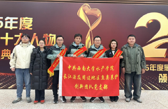 近日,2025年度“感动重庆十大人物”名单正式揭晓。学院长江源及周边地区鱼类养护创新团队党支部4名党员同志作为核心骨干所在的“西部(重庆)科学城种质创制大科学中心长江源珍稀鱼类保护团队”,凭借在长江上游水生生物保护领域的卓越贡献和感人事迹脱颖而出,荣膺这一全市崇高荣誉。