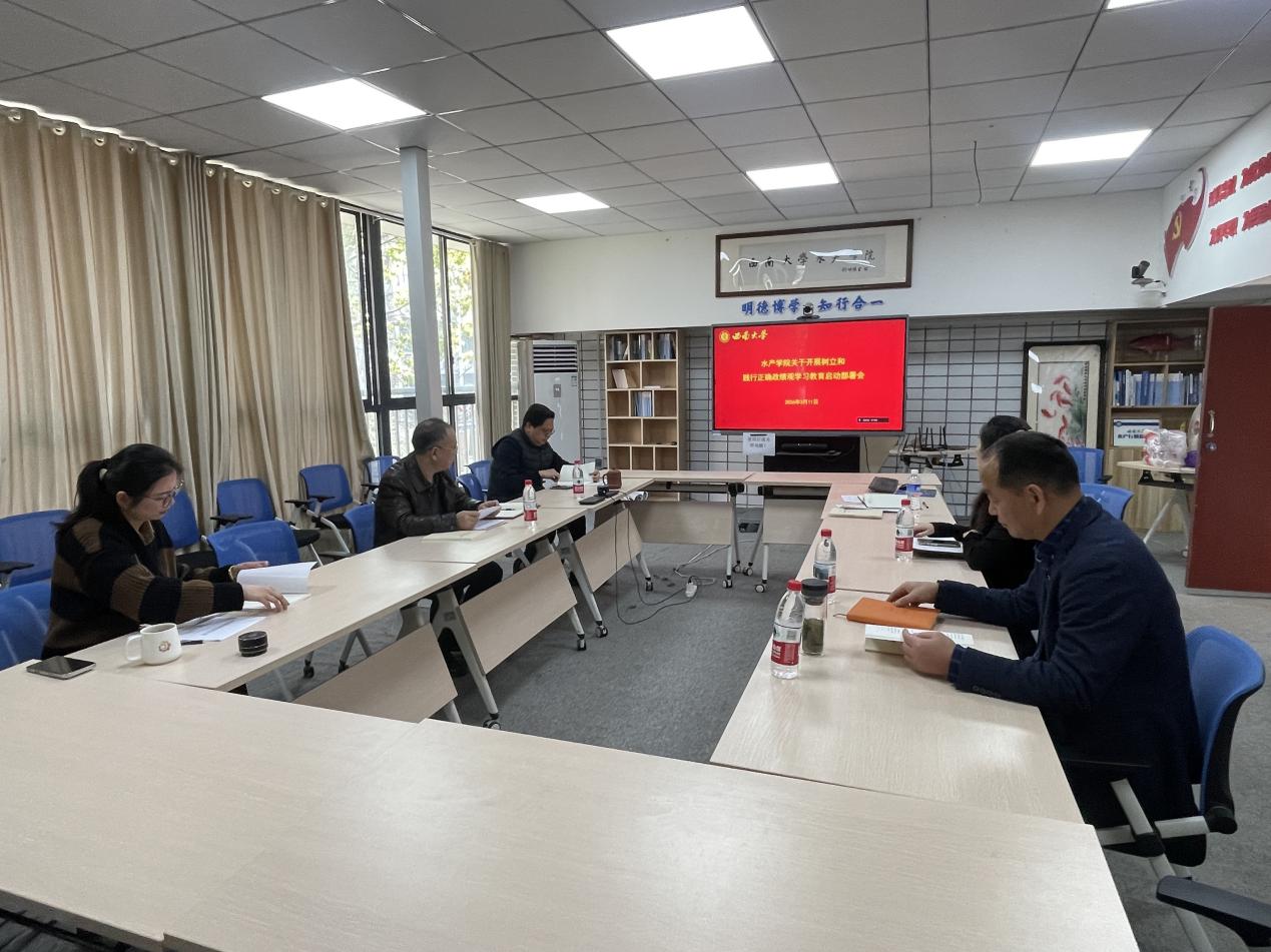 会议强调,开展好此次学习教育,一是强化理论学习,筑牢思想根基。依托党委理论学习中心组、“三会一课”、主题党日等形式,分层分类开展学习研讨,推动理论学习入脑入心,引导大家树立求真务实、担当作为的政绩导向。二是坚持问题导向,狠抓整改落实。聚焦学科发展、教学科研、师生服务、乡村振兴服务等重点工作,全面查摆政绩观偏差问题,建立问题清单、责任清单、整改清单,逐项推进整改,提升工作质效。三是压实工作责任,强化督导落实,成立学院学习教育工作专班,明确责任分工,加强全过程督促指导,确保学习教育有序推进、取得实效,把学习成效转化为立德树人、科研攻关、服务地方渔业产业发展的实际行动。