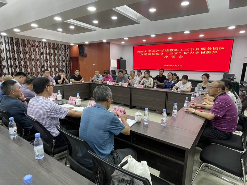 为贯彻落实教育部《高校思想政治工作质量提升工程实施纲要》构建“十大”育人体系之实践育人质量提升体系,坚持理论教育与实践教育相结合的原则,更好服务“三农”,在学校工会的指导下,学院积极组建由专家、教授和中青年教师组成的教职工志愿者“三下乡”服务队。7月6日—8日,学院党委书记杨新斌带领服务队走进城口、开州,通过深入水产养殖基地现场调研、与基层政府和养殖户座谈交流、对养殖户进行养殖技术指导等形式为地方渔业发展“精准把脉”,建言献策,深度助力乡村振兴。