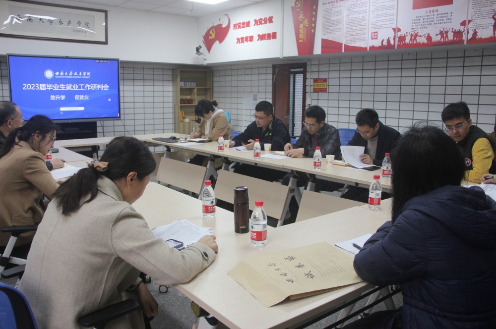 为强化助升学、促就业举措,促进水产学院2023届毕业生高质量充分就业,3月16日上午,学院在10教307会议室召开就业工作研判会。学院党委书记杨新斌,党委副书记、纪委书记刘一丹,毕业生辅导员以及全体本科毕业生班主任参加本次会议。会议由刘一丹副书记主持。