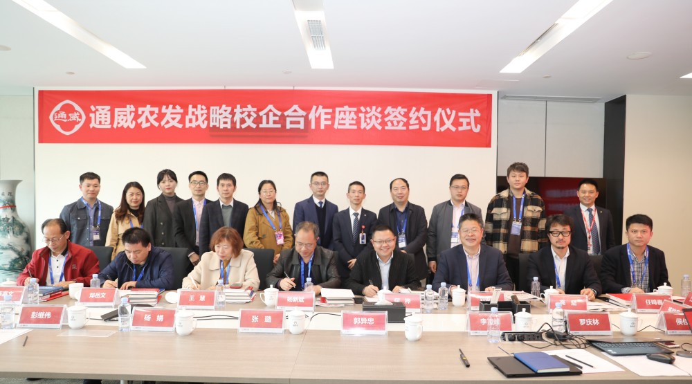 会上,通威农发相关领导就该公司目前的产业发展现状、校企合作状况及未来合作方向进行了详细介绍,杨新斌书记就学院目前办学情况、毕业生就业状况以及校企合作展望进行了分享。双方就促进水产毕业生更充分更高质量就业、提高产科教协同育人成效、科研合作助推水产行业发展等方面展开了密切交流和探讨,并签署了校企合作框架协议书,为今后的深入合作打下坚实的基础。华中农业大学、四川农业大学等七所高校水产学科相关领导共同参与此次会议。