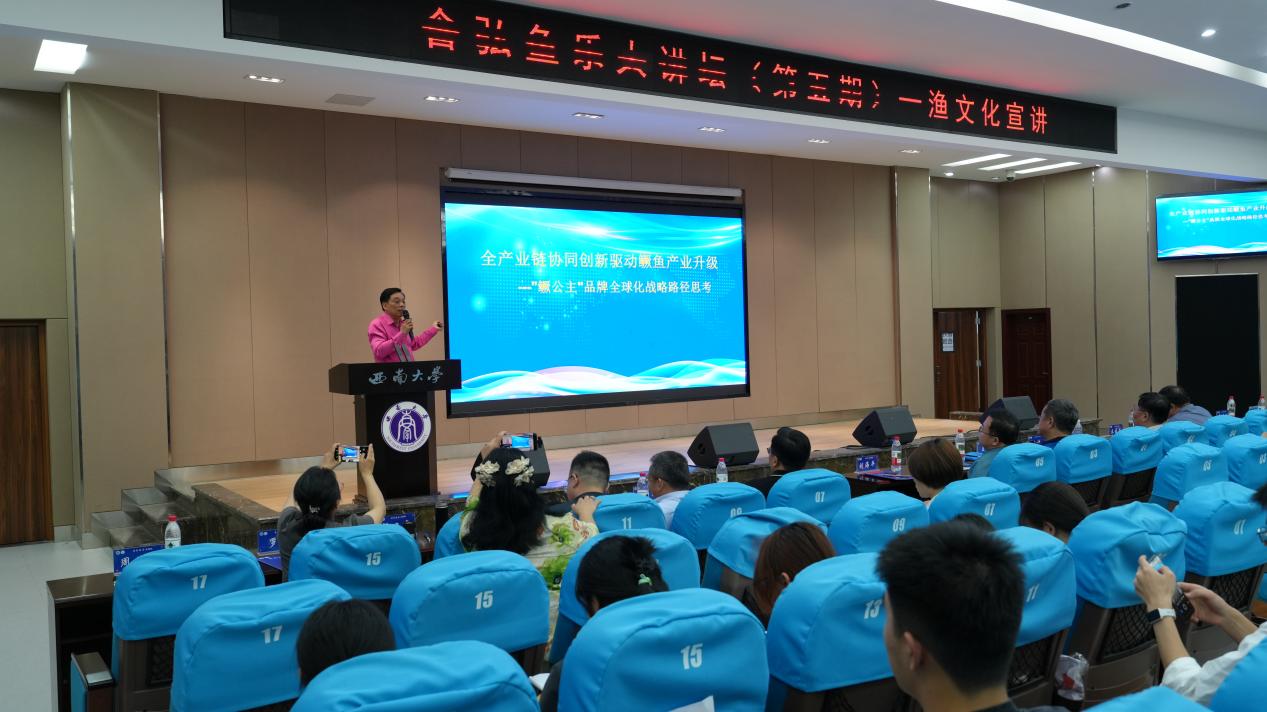 4月20日,第五期“含弘鱼乐大讲坛”在荣昌校区成功举行。本届论坛以“渔文化传承与创新发展”为主题,特邀中国水产学会渔业历史与文化分会主任委员王颖教授、副主任委员兼秘书长吴青副教授、副主任委员宁波教授等专家出席,通过学术研讨与产业对话的双向联动,探索传统文化赋能现代渔业发展的创新路径。