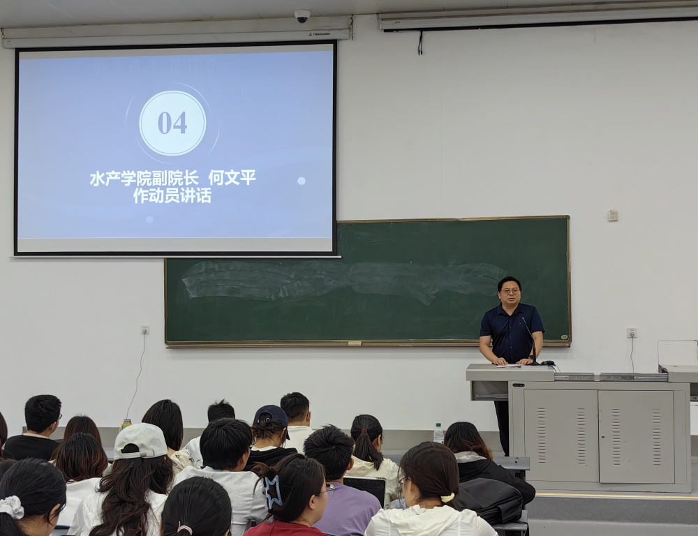 最后,何文平副院长作动员讲话。他指出,纸上得来终觉浅,绝知此事要躬行,毕业实习是对“明德博学、知行合一”院训的生动践行,是加深专业认知、锻炼科研能力的重要契机,同学们需充分准备、认真对待。何文平副院长向同学们提出三点要求:安全第一,这是一切工作开展的前提;严守纪律,这是顺利完成实习的保障;尊重劳动,这是“劝课农桑”的西大底色;何文平副院长寄语水产学子,希望同学们敏思笃行,敢闯会创,成为把科研论文写在祖国大地上的“神笔马良”。