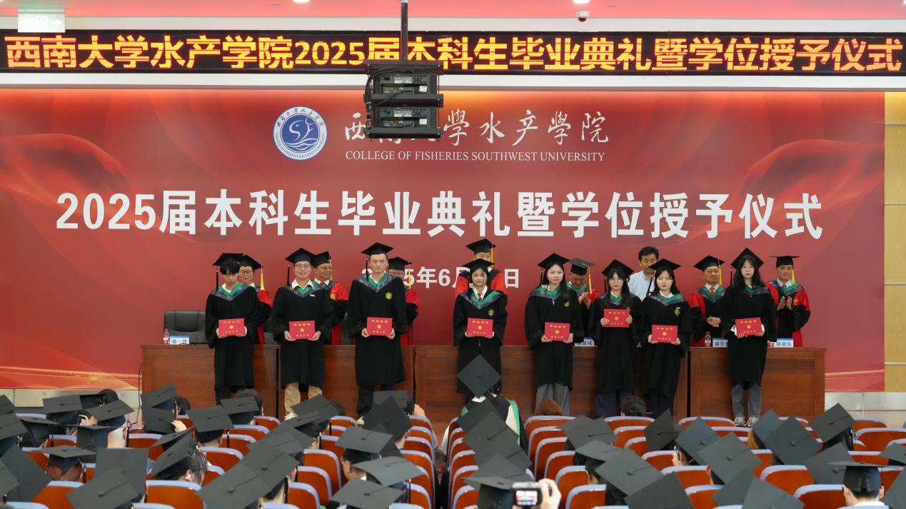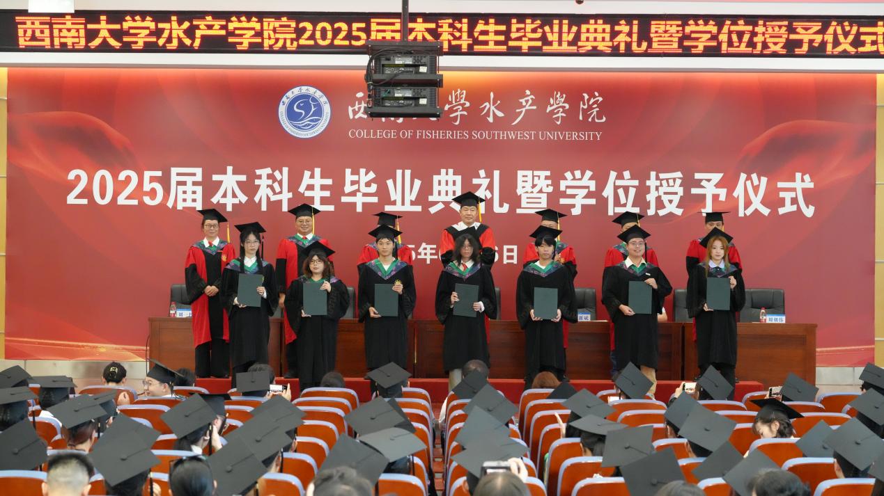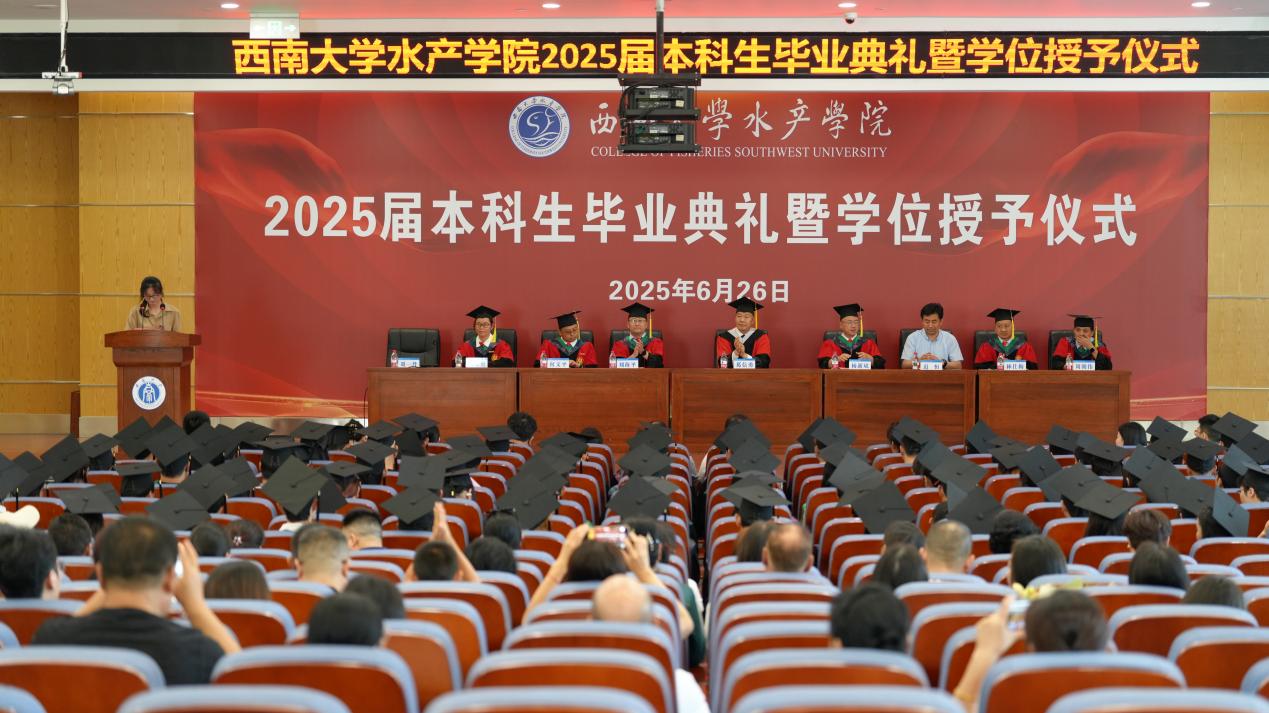 骊歌唱响,征程启航。愿2025届毕业生秉承师长教诲,胸怀“以水为镜”的德性、“以渔为舟”的实干、“以海为志”的担当,在时代的浪潮中扬帆奋进,以勇毅与创新书写水产人的深蓝梦想,共赴崭新航程,激荡青春荣光。