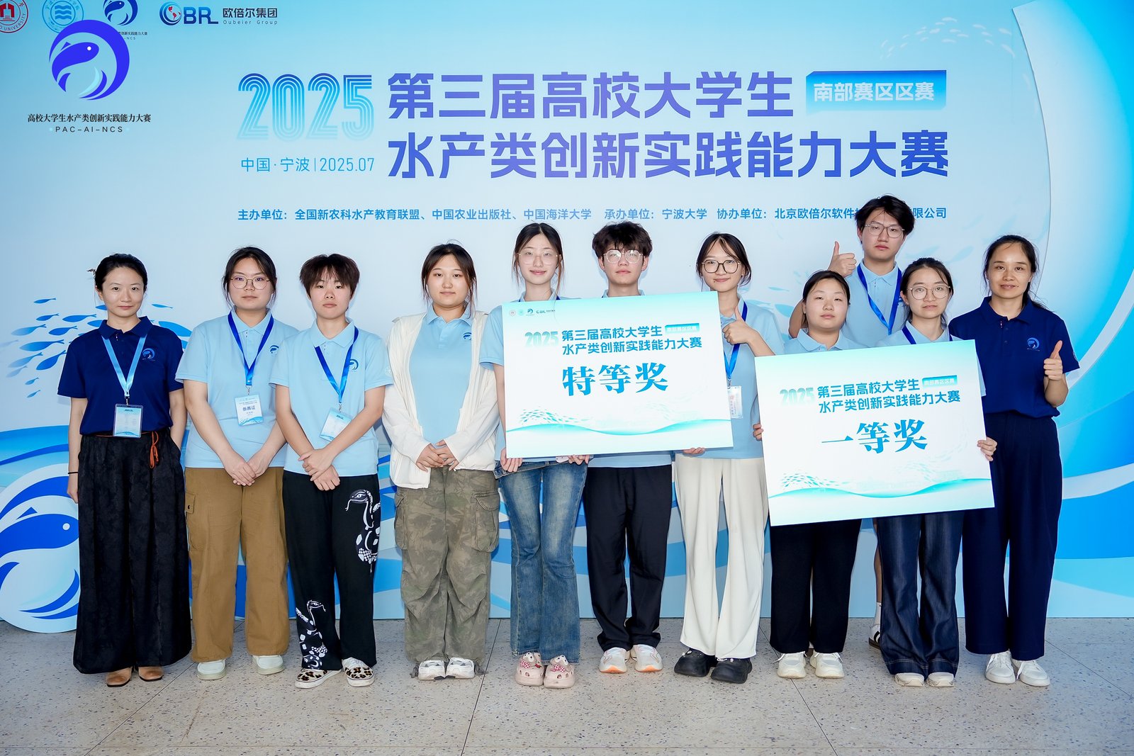 2025年7月12日,由全国新农科水产教育联盟、中国农业出版社、中国海洋大学联合主办,宁波大学承办的第三届高校大学生水产类创新实践能力大赛南部区赛决赛圆满落幕。在这场汇聚水产领域青年才俊的高水平赛事中,我院李艳红、范士琦两位教师带队出征,携9名本科生组成3支参赛队伍,与19所高校的40支队伍、200余名师生同场竞技,最终凭借扎实的专业素养和出色的团队协作,斩获佳绩!