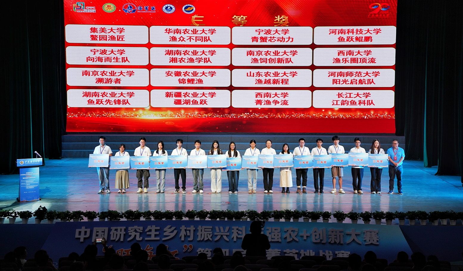 10月24日—26日,中国研究生乡村振兴科技强农+创新大赛“旺海杯”第四届渔菁英挑战赛决赛在广东海洋大学湖光校区举行。本次大赛是在教育部学位管理与研究生教育司指导下,由中国学位与研究生教育学会、中国科协青少年科技中心主办,专门面向在校研究生的全国性赛事,吸引了全国41所高校93支队伍近500名师生参赛。