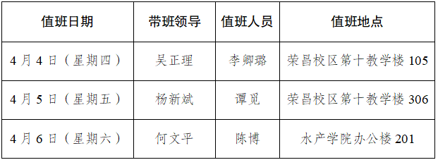 水产学院2024年清明节值班安排表