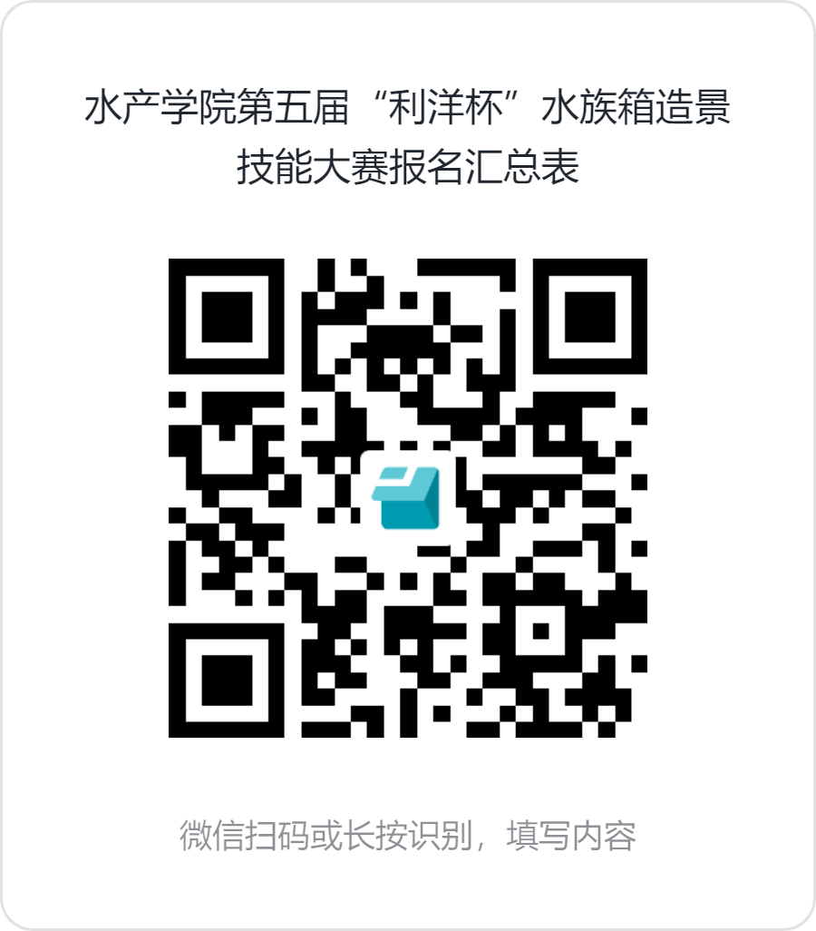 2025年4月30日17:00前,在线填写报名信息:https://f.kdocs.cn/g/QmLKzGwq/「水产学院第五届“利洋杯”水族箱造景技能大赛报名汇总表」;