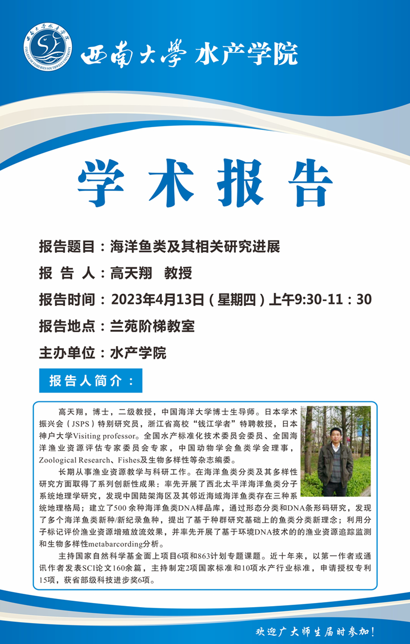 【学术讲坛】海洋鱼类极其相关研究进展